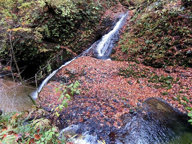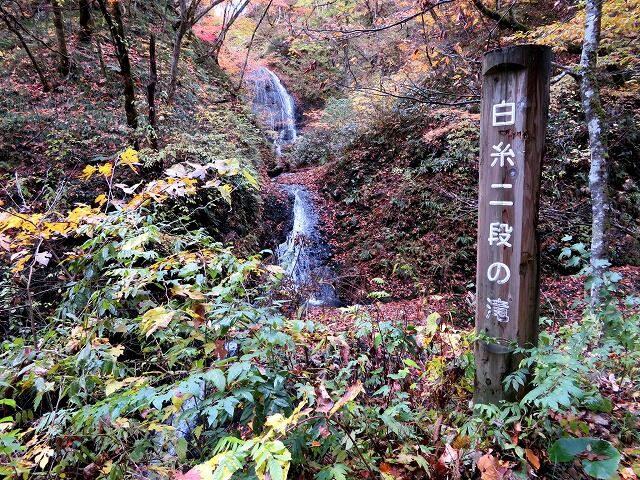 ちなみに峨瓏の滝(峨瓏大滝親水公園)の案内板には「(前略)…滝上流の渓谷には、白糸二段の滝と呼ばれる滝があります。峨瓏の滝駐車場から高山登山滝の沢コースに続く未舗装の道をたどれば滝に行くことができます。そこまで徒歩30分。」とありますが、個人的には30分もかかりませんでした。そもそも峨瓏の滝が気軽過ぎるんです。峨瓏峡隧道から白糸二段の滝までは3~4分です。