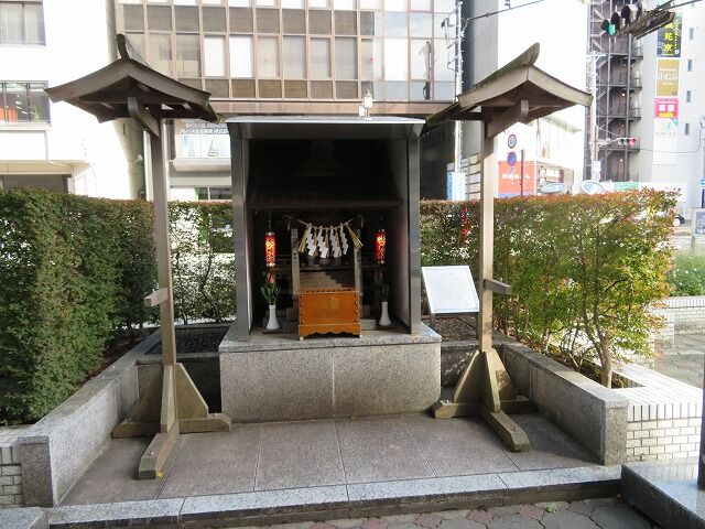 案内板「恵比須神社由緒」より…『このお宮はえびす神の総本社として崇められております兵庫県西宮市に鎮座する西宮神社より御分霊をうけ、以来恵比須神社としてお祀りしてあるものです。西宮神社は古来銘酒の産地として名高い西宮市の中央に位置し、平安時代には高倉上皇の御奉幣、後奈良天皇の御寄進等があり、神祇官の長官たる白川伯王家の崇敬が篤く、中世以降海上の交通交易に霊験ありと信じられ、えびす神を福神として崇敬する信仰が根強くなり全国津々浦々にまで神徳が拡まってまいりました。江戸時代に至り、ますます社勢は盛大となり一月の十日戌大祭は百万人もの参詣者を数える全国でも著名な祭典の一つとされております。この様にえびす神は今日では商売繁盛、福徳円満、家内安全の守護神として広く信仰されております。昭和55年10月株式会社川徳』