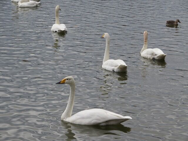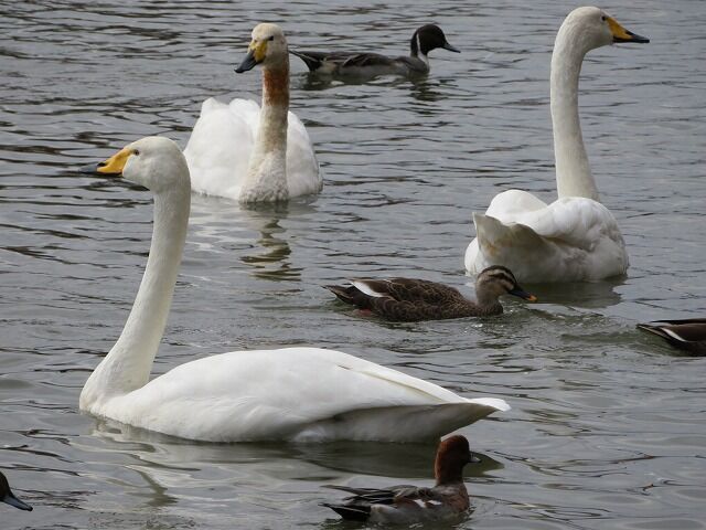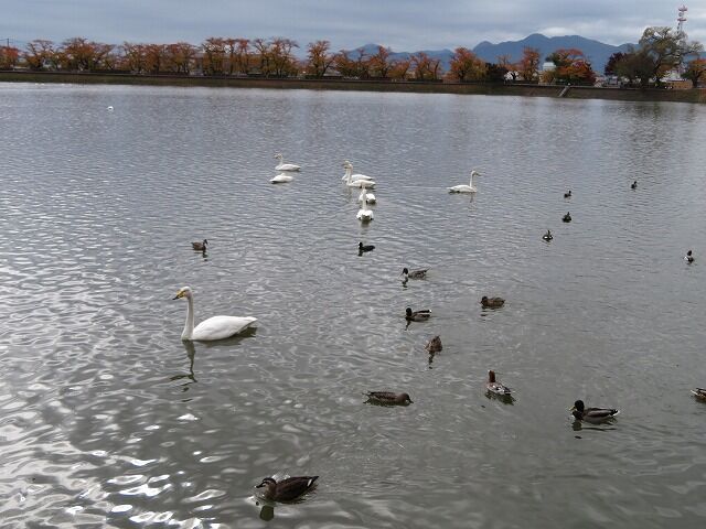 池…多くの白鳥の飛来地として有名。昭和59年からの餌付けにより、多くの白鳥が飛来し始め、現在では1月のピーク時で600羽を超える白鳥が飛来するようになり、5月頃まで越冬します。冬季の湖面では、戦前からスケートも行われており、昭和33年には第13回冬季国体、第7回全国高校スケート大会の会場ともなりましたが、昭和53年頃から氷が薄くなり、現在は氷上の利用が禁止されています。