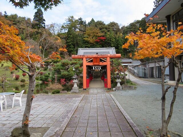 Wikipedia「榊山稲荷神社」より一部抜粋…『榊山稲荷神社(さかきやまいなりじんじゃ)は、岩手県盛岡市にある神社。もりおかかいうん神社という異名でも知られる。【概要】盛岡市中心部の北方、北山に鎮座している。南部信直が慶長2年(1597年)、盛岡城築城の折、祖先源義光の時代から崇敬されてきた「さかきやま稲荷大明神(豊受之大神)」を城内に祀り、藩の運命をかけ、 盛岡の街創りの総鎮守として定めたのが創建とされる。明治4年(1871年)の廃藩置県により一度、廃社となるが、昭和5年(1930年)、隠されつづけたご神体を現在の北山の地に鎮座し、再建された。【祭神】豊受大神(豊受姫之大神)【境内社】●加賀宮 (かかのみや)(本社祭神である豊受姫之大神の荒魂)決断の神。●金殖(かねづくり)神社(豊受姫之大神)金運の神…藩政時代に榊山神社の分社の一つである「斗米稲荷」と称された神社であり、昭和のはじめ、岩手銀行(当時、岩手殖産銀行)の守護神として祀られていたものを、昭和33年(1958年)に現在の本社、榊山神社の奥宮として遷座し、お金を殖すということに、ご利益があるということから「金殖(かねづくり)神社」と称されてきた。平成12年(2000年)9月、岩手銀行が社殿・参道の改善工事を行う。●あわしま神社(淡島神社/淡島明神社)(少彦名命・大己貴命・息長足姫命)子授け・安産の神…榊山稲荷神社の境内末社で寛保4年(1744年)2月、別当広田出雲守により、紀州の加太神社(淡嶋神社)から勧請して創建。●てんそれい社(天祖霊社)祖先・水子供養の神…天神地祇・八百万神の祖神天之御中主大神を祭神とし、総代始め氏子の方々の死者の霊を安置しており、6月第3日曜に祖霊感謝祭を斉行し、祖先の霊をなぐさめ、その御守護を祈願する。●てんまん神社(天満神社/菅原いなり社)合格・学業の神…平成10年(1998年)に鎮座。天神さんの御利益を持つ、いなり大神を祭る。●あさひりゅう神社 (旭龍神社/旭龍大明神)水の神…水の精霊神を祀っているため水を扱って生活をしている人々の守神に当たる。特に農業を始め料理、飲食業を生業とする人々の信仰篤く年々崇敬者が増している。●とみ八幡社(飛八幡社)殖産興業の神…八幡社は、石橋家に永く祭られたる神であり、八戸市より遠野市に転封の際、雷鳴の如き御音に家人驚きみれば、庭前の巨木に御神体飛び遷り来て、以来、「飛八幡」の名を以て、子孫繁栄家業隆盛の守護神として近隣の信仰を集めている。●ふなたま社(船霊社)大漁の神…創建不詳、昭和38年(1963年)に当神社へ合併。秋田県の横手市にて昔、秋田の海岸の綱元を始め漁夫等に信仰され、近県を始め関東地方より、崇敬者が集まり、綱元は一年に一度は是非参籠して、一年の船の安全と大漁を祈願したと伝えられる。』