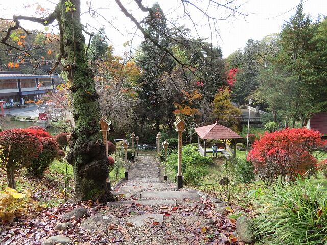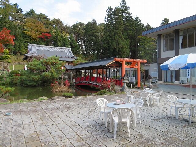 緑風苑…『寛永年間方長老師が作庭された庭ですが、時の流れに荒廃しておったものを初代宮司荒川清次郎氏が庭師中舘福松氏と共に20年の歳月をかけて完成された庭で、北山の自然の山なみを背景に湧きいづる水が流れ込む心字の池を有し、歴史的にも南部藩内の名勝地として有名な庭園であります。』