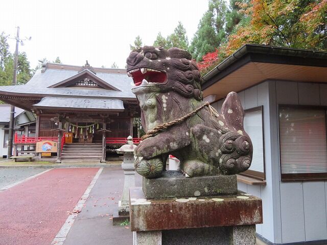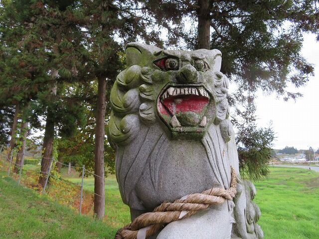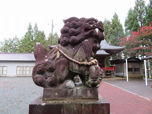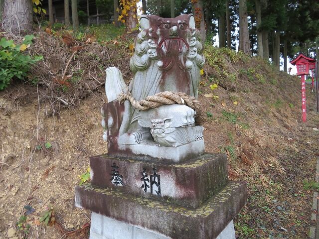 狛犬一対(平成6年7月吉日改築記念、東長岡西葛弘、施工㈲紫波石材)