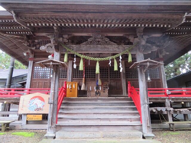 神社庁より…『【御祭神】素盞鳴尊【例祭日】旧6月14日(現在は7月の「海の日」を中日に前後3日間)【由緒】八坂神社は人皇第五十代桓武天皇延暦年中(782-806)坂上田村麻呂将軍勅命を奉じ、征東に際し当地に下向。折しも東奥の霧ヶ山嶽(現在の岩手山)に大猛という凶賊が巣をなし住み、住民を悩まし、あまつさえ法に叛き、仇さえなく有様で、将軍この聖山に素盞雄命を勧請し、武運長久、討伐成就を祈願したるに、彼の大猛凶賊も難なく征伐した。その後、文安年中(1444-1446)奥州の国郡山比爪城(現在の城山)の斯波陸奥州義兼、同族の斯波孫三郎詮直と代々崇敬厚く神領を寄進し、また社殿の修補あり。天正年中(1573-1592)斯波氏に代わり南部氏が当地を領するに、藩主南部信直公をはじめ歴代の藩主崇敬厚く、寛永9年(1632)藩主利直公当社に牛頭天王社の尊称を給わり、共に玄米十五駄ずつ永代寄進の証文附置下さる。元禄年中(1688-1703)藩主重信公社殿御造営寄進、宝永4年(1775)藩主行信公玄米十五駄ずつ永代寄進の証文附置下さる。享保6年(1721)藩主利幹公社殿修復。宝暦5年(1755)藩主利雄公社殿修復。寛政5年(1793)及び文化5年(1808)藩主利敬公社殿修復。文政10年(1827)、天保10年(1839)、文久2年(1862)いずれも藩主利済公社殿修復崇敬されしも、貞享年中(1684-1687)に野火のため社殿類焼し、古器または神社記など失ったが、明治6年(1873)3月、郷社に取据えられる。平成6年境内地整備に着手。参集殿・神楽殿・お札授与所を新築、平成12年拝殿屋根銅板葺き流れ造りに改築、末社相馬社新築、平成16年神輿庫新築、参道石段改修並びに参道をカラー舗装等10年をかけ境内地整備がほぼ完了する。』