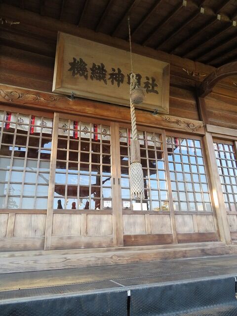 米代川に近い機織という村は、秋田城之介が領主の時に、都の方から流れてきた機織りにたけた女性を岸辺に住まわせて絹布を織らせたということから名付けられた土地の名であるといいます。江戸期の機織村は出羽国山本郡(寛文4年まで檜山郡)のうち。秋田藩領。村名の初見は「享保黒印高帳」。天正19年秀吉朱印状写、「正保国絵図」に記載なし。高は「享保黒印高帳」で村高590石余・当高363石余(うち本田0・本田並172・新田191)、「寛政村附帳」で当高475石余(うち蔵分48・給分427)、「秋田風土記」で高363石余、「天保郷帳」で520石余。免は文化期に3.8。家数及び枝郷は享保期60軒(うち枝郷谷地中5・鵜野沢村4)、寛政期枝郷は田屋、文化期家数は70軒(うちに枝郷谷地中、鵜の沢を含む)。生業は漁猟が主。寺社は八幡社・神明社。明治9年山本郡三合村を経て明治10年榊村の一部となります。現在は小字の機織轌の目。