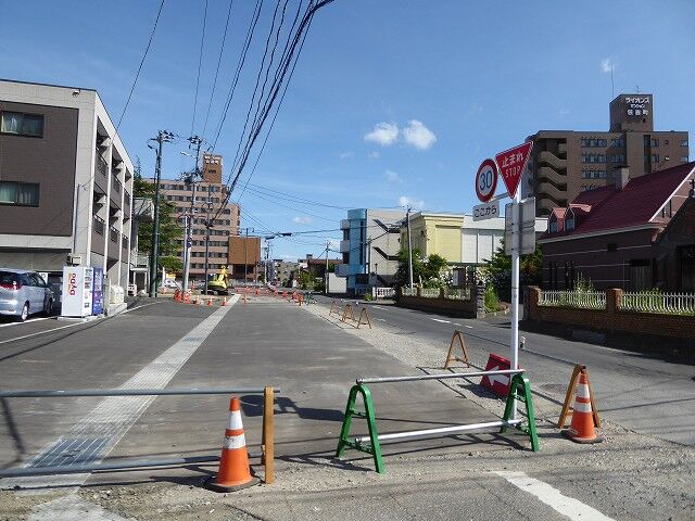 日本聖公会弘前昇天教会前(山道町)から品川町方面。