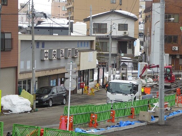 土淵川に架かる境橋を経て北川端町へと通ずる道ができたのは明治末期ですが、昭和27年に弘前電気鉄道(弘南鉄道大鰐線)が開通して中央弘前駅が開業し、山道町の西端部は大きな変貌を遂げました(※昭和31年に中央弘前駅の地域は吉野町に)が、その後の山道町は飲食店や各種商店、アパートや駐車場ができ、閑静な住宅と病院の街になり、すっかり中土手町商店街の裏町と化しました。昭和25年の世帯数は38(人口238)でしたが、昭和59年には世帯数28(人口64)となっていることが山道町の変化を如実に示しております。