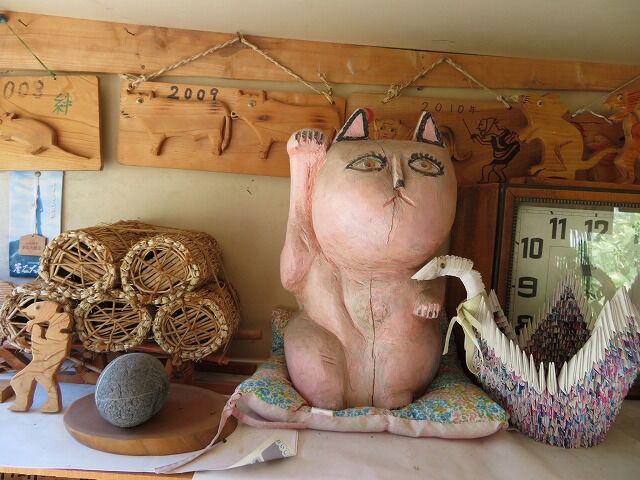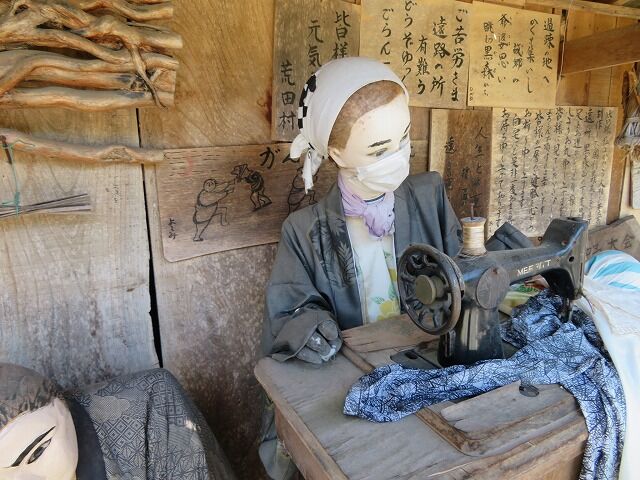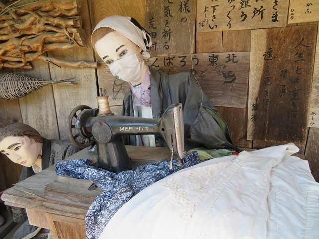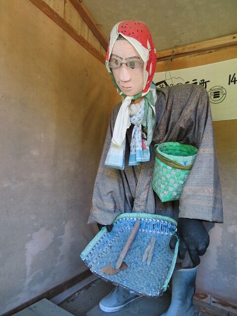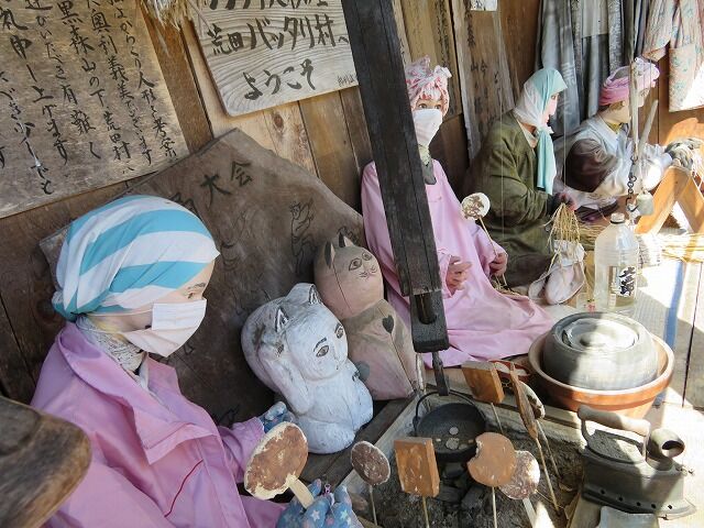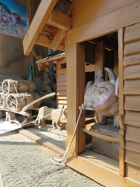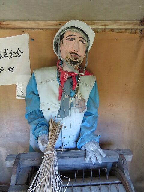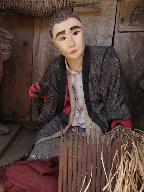 この地で農業を営む奥利義美さんが農閑期に作品を作っています。人形は基本的にくしもちを焼く姿や脱穀作業をする姿など南部の人々の暮らしを再現したもの。