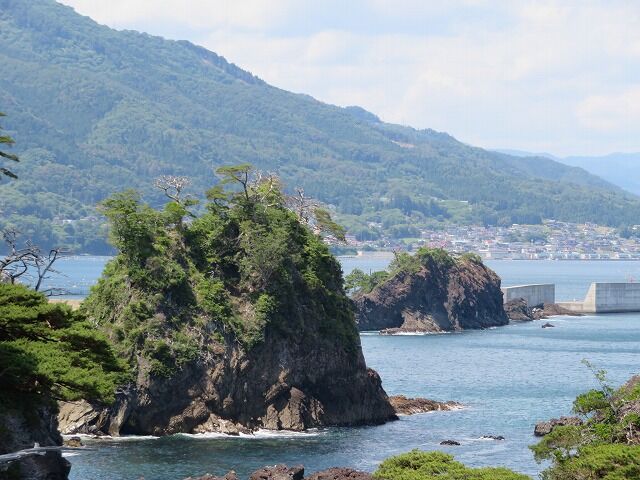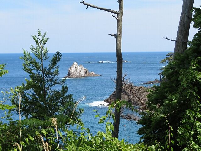 当磯に通ずる自然歩道からは大船渡湾や対岸の長崎海岸などが望まれ展望に優れます。ってことでちょっぴり歩いて…