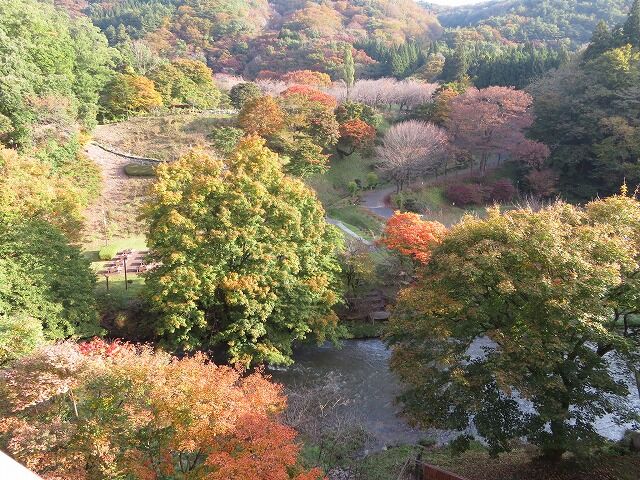 部屋からの眺望。すぐ下に豊沢川が流れています。