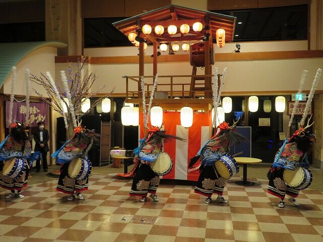 館内のお祭り広場ではマジックショーや東北民謡ショー、郷土芸能「鹿踊り」など各種イベントが行われています。