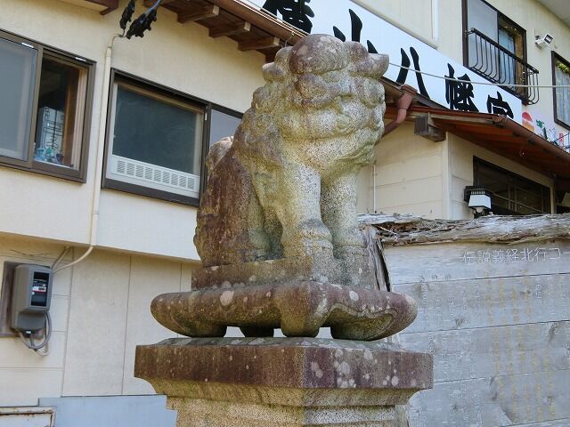 二之鳥居と狛犬一対(昭和12丁丑年丁丑8月15日、宮古町齊藤渟助寄進※ちょっと見辛かったので間違ってるかも)