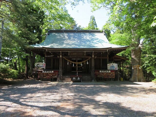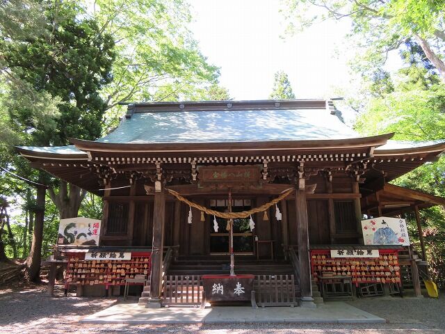 神社庁より…『【御祭神】品牟陀和気命、天照皇大神、豊受姫命【例祭日】9月15日【由緒】古代によれば、天武天皇の白鳳9年(673)8月であると言い伝えられており、元明帝の和銅年間(708~715)に猿丸太夫が勅勘を蒙りてこの地に流されたことがあり、里人は太夫を宮守りに頼んだという。従って和銅年間には確実に存在したといえる。「奥山に紅葉ふみわけ鳴く鹿の声聞くときぞ秋はかなしき」の歌は、その時太夫が横山の里で詠んだ歌であるといわれている。又、66代一条帝の寛弘年間(1004~1012)に阿波の鳴門が大鳴動を起こした時、神社の禰宜は神歌を夢に見、これを以て鳴門の鳴動を止めんと態々阿波国に赴き神歌を詠んで祈願した処、鳴動は止んだという。その詠んだ歌とは「山畠につくりしあらしのゑのこ草阿波の鳴門はたれかいうらん」であり、朝廷に召されて社詞の光景を問われた禰宜は「我が国は年経し宮の古くして御幣の串の立つところなし」と和歌をもって答えた処、帝之を称讃して宮古の二字を賜わり、以後地名を宮古というようになった。明治以降、市内神明社と稲荷神社を合祀。』