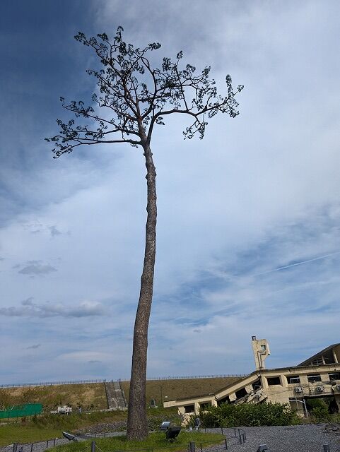 案内板より…『東日本大震災津波で約7万本といわれる松が消失した名勝「高田松原」。その中で、津波に流されずに耐え抜いた松は「奇跡の一本松」と呼ばれ、震災で深く傷ついた人びとの心の支えとなり、復興のシンボルとして全国に知れ渡りました。震災の翌年には枯死状態となりましたが、保存を願う国内外からの温かい支援によりモニュメントとして保存され、震災の記憶を伝え続けています。』・『Takatamatsubara,is a place of scenic beauty where the Great East Japan Earthquake and Tsunami is said to have destroyed approximately 70,000 pine trees.Among these,one pine tree that endured and was not swept away by the tsunami.This tree,known as"Miracle Pine",became an emotional support for the people who were deeply affected by the earthquake disaster,and came to be known throughout Japan as a symbol of reconstruction.The year after the earthquake disaster,this pine tree withered and died,but it has been preserved as a monument through heartfelt support from people within and outside of Japan who wished for its preservation,and continues to convey memories of the earthquake disaster.』