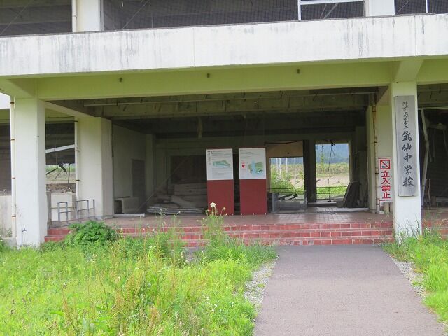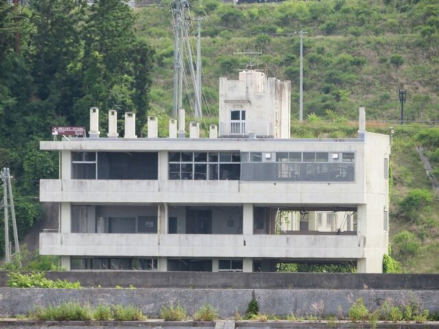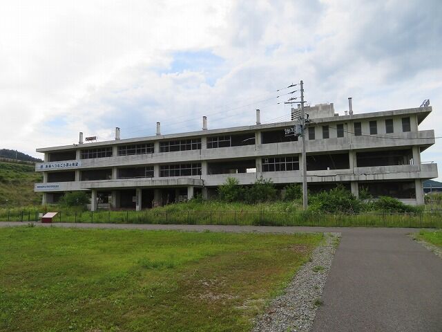 震災遺構・気仙中学校(Remains from the earthquake:Kesen Junior High School)…『【被災前の気仙中学校】気仙中学校は、1947年(昭和22年)創立、被災した校舎は1981年(昭和56年)に新校舎として竣工。地元「気仙町けんか七夕祭り」では生徒が太鼓や笛を披露するなど、コミュニティの中心でもあった学校でした。被災後、2018年(平成30年)に、他校との統合により気仙中学校としての71年の歴史に幕を閉じました。東日本大震災津波の被災地で最も海に近い中学校だった気仙中学校の校舎は、広田湾へと注ぐ気仙川の河口にあり、名勝高田松原や、広田湾の美しい風景を望むことができました。海に至近のこうした環境のため、普段から津波に備えた防災訓練にも力を入れ、毎年の防災講話や避難場所・避難経路の想定や確認、津波警報・注意報が発令されるごとの避難訓練も実施。こうした日頃の備えが、東日本大震災津波発災時のすばやい避難行動に結びつきました。・【Kesen Junior High School before the disaster】Kesen Junior High School was founded in 1947,and the now damaged school building was completed in 1981 as a new school building at the time.At the local Kesen's Kenka Tanabata Festival,students often performed with drums and flutes.The school also played a role being the center of the community.After the disaster,in 2018,the school closed the curtain of its 71_year history by merging with other schools.The school building of the former Kesen Junior High School,which was the closest junior high school to the sea in the area affected by the Great East Japan Earthquake and Tsunami,is located at the mouth of the Kesen River that flows into Hirota Bay.You could see a beautiful landscape of the scenic Takata Matsubara and Hirota Bay from the school.Due to its vicinity to the sea,there were frequent disaster prevention drills to prepare for tsunami waves in the event of a large earthquake.Each year,the school had organized disaster prevention lectures,checked for the best evacuation routes and sites,and also conducted evacuation drills when tsunami warnings and advisories were issued.Due to their diligent everyday preparations,the students were able to take quick actions to evacuate during the Great East Japan Earthquake and Tsunami.【被災状況】2011年(平成23年)3月11日14時46分巨大地震発生。その日登校していた生徒全員が、体育館で卒業式に向けた合唱練習をしているさなかでした。日頃からの防災学習により、出席していた全生徒、全職員は直ちに高台に避難して全員が無事でしたが、津波は河川堤防を越え、校舎の屋上にまで達して、3階建ての校舎はわずか数分で水没しました。校舎の外観は残りましたが、津波のすさまじい威力により内部は破壊され、備品や設備はほとんどが流失、学校生活のすべてが一瞬にして奪い去られました。生徒たちが居た体育館も流れ去りました。・【Damage situation】A huge earthquake occurred at 14:46 on March 11,2011.All the students who were attending school that day were practicing chorus for the graduation ceremony at the gymnasium.Due to their diligent everyday preparations,all the students and staff who were present at the time had safely evacuated to the hill immediately.But the tsunami crossed the river embankment and reached the roof of the school building.As a result,the three_story school building was submerged in a few minutes.The exterior of the school building remained,but the tremendous power of the tsunami destroyed the interior,where most of the fixtures and equipment were swept away.All traces of a school life was instantly taken away.The gymnasium where the students had been,was also gone.【保存・活用活動】大津波の生々しい爪痕が残る気仙中学校は、日頃の防災学習の大切さを伝える震災遺構として保存・活用されています。・【Preservation/Utilization Activities】Kesen Junior High School,where the vivid scars of the great tsunami remain,is preserved and utilized as a disaster remain that conveys the importance of daily disaster prevention learning.』