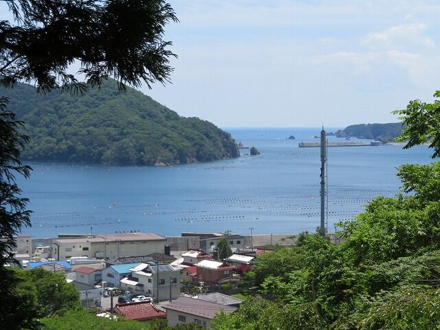 大船渡は大船渡湾の西岸に位置。氷上山の山麓が海岸まで迫り平野地が少なく、町並は海岸に沿って長くのびています。湾口は南向きで幅約1km・奥行約6kmで細長いです。地内には縄文後期・晩期の下船渡貝塚、古墳時代の蕨手刀や土師器が出土した地の森遺跡があります。