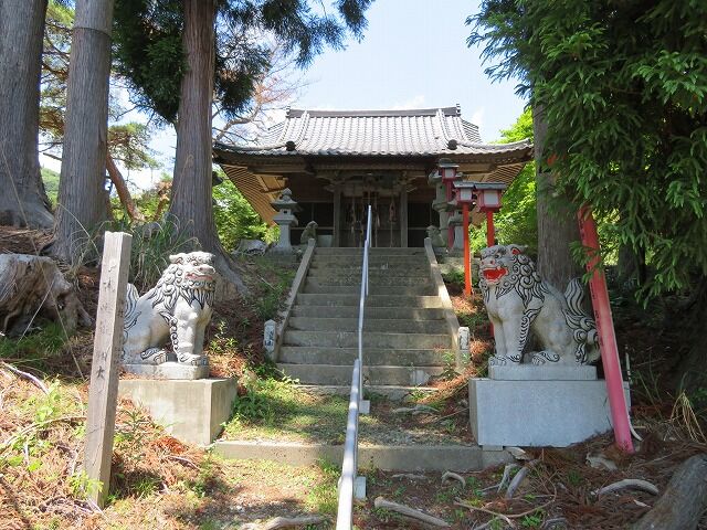 岩手県大船渡市大船渡町鷹頭。下船渡駅の西方。神社参道入口は大船渡町宮ノ前。一之鳥居前に宮ノ前公園があります。下船渡貝塚も近いです。