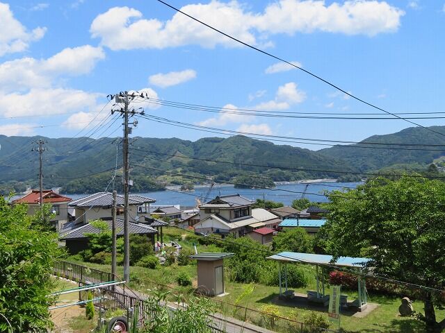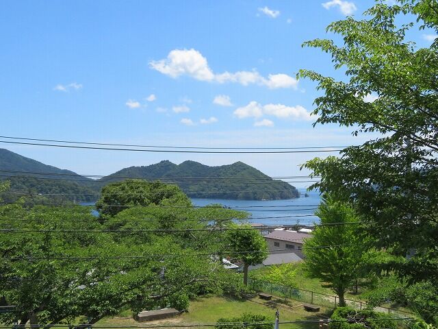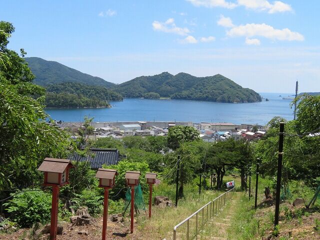 参道からの眺望。あちらは尾崎岬かな。尾崎神社が鎮座しております。