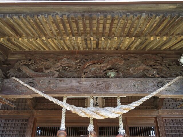 初代は隣の倉庫に保管されています。観音神輿:元禄10年3月11日江戸宮大工杉□利兵衛作、明神神輿:享保11年11月宮大工小松野伊勢蔵作、金崎武左エ門・前川善兵衛(三代助友)寄納。