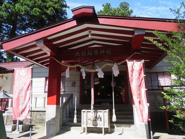 神社庁寄り…【御祭神】倉稲魂命、健御名方命【例祭日】9月22日【鎮座地】上閉伊郡大槌町大槌第28地割23番地【由緒】当神社は倉稲魂命、健御名方命二柱の大神を祭神として祀り、元来町内東方波辻崎の地に鎮座せしが、境内地狭地にして往々諸参詣の障を察し、御鬮を以て神慮を伺い奉り、豪商吉里々々善兵衛氏を主として、一浦の船主、船頭渇仰し享保五年(1720)新宮併拝殿を造立。当年九月九日当山に再遷宮なるを以て神号を二渡と崇唱し奉り、大槌郷の総鎮守として大槌城主大槌孫三郎広長及び大槌孫八郎広信の崇敬厚く、寛保元年(1741)六月、藩主南部修理大夫利視公直拝され、又安永五年(1776)八月、北監物殿(南部家御三家の一人)参拝され、五穀豊穣・海上安全・魚藻大漁・富国安民の祈誓を篭られ、庶民亦産業豊成の御神徳顕かなるお社として、昭和十八年(1943)郷社に列せられ社名を大槌稲荷神社と改称、益々ご神徳の発揚と地域住民の信仰いよいよ厚く、広く地方産業育成の守護神と仰がれ、各地より厚く信仰を集める神社である。