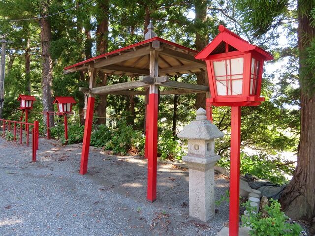 境内社八大龍王社。八大龍王社は古来より、海上安全・海幸守護の神、海の神様として、氏子漁師に信仰されてきました。以前は講中が結成され旧暦4月8日をご縁日として神事を行われていました。現在は講中も解散してしまったため、個人単位による例祭が執り行われています。