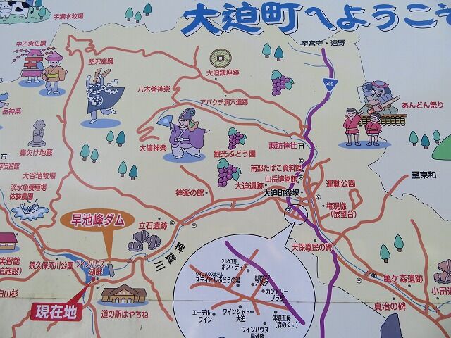 神楽とワインの里、大迫町(おおはさままち)案内板。