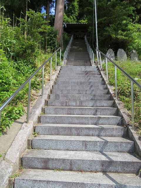 由緒…『当社の勧請人は旧別当法印宥善(当社の別当熊谷家の先祖)である。宥善は大和国吉野郡立石村の人で、諸国を修行遊歴していたが、文安3年(1446)、終に当村(綾里)の崎山摩伽ヶ原という所に幽かなる草庵を結び構えて居住し、朝夕熱心に天照大御神を祀り崇敬していた。宝徳年間(1449-1452)に至り領主千葉大学祈願の事があり、宥善に命じて城外に院宇を移させた。後に正徳4年(1714)に至り、当院の西の字舘(現在地)という所に社殿を造営し御遷座された。若干年を経て衰頽に及んだ時代もあったが、村民一統の篤い信仰により、天保3年(1832)4月、村社の称を受けられた。』