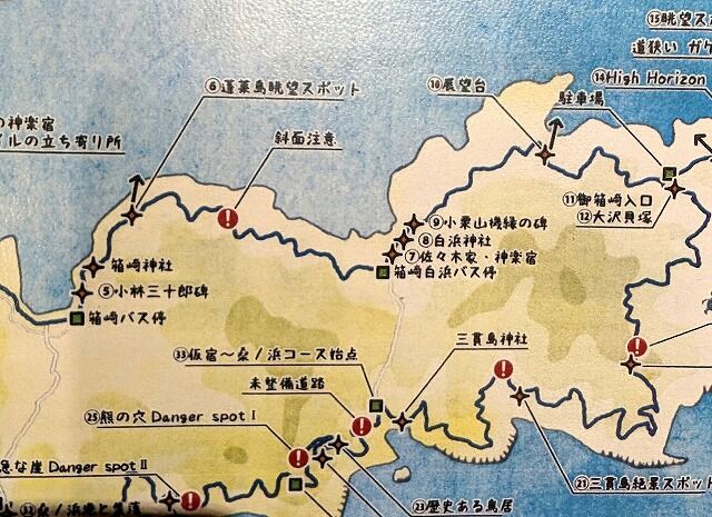 箱崎は大槌湾・両石湾に挟まれて位置。縄文遺跡は地内前畑から前期、白浜から後期、大沢から中期の土器が出土。江戸期の箱崎村は閉伊郡のうち。箱ケ崎村とも書きました。盛岡藩領。大槌通に属します。慶長年間に大槌氏が滅亡した際、大槌氏の一子三徳丸と母がともに箱崎修験金剛院に一時逃亡しています。慶長19年大土御蔵納米を見ますと、当村は74駄片馬2斗6合、桑浜村は6駄7升を納入。村高は正保郷村帳73石余(田14石余・畑59石余)、貞享高辻帳91石余、邦内郷村志102石余、天保郷帳100石余、安政高辻帳91石余、旧高旧領100石余。仮名付帳によりますと当村の枝村として白浜村・桑野浜村・苅宿村が見えます。当村は津波被害の多い漁村でした。元禄12年の藩の絵図には箱ケ崎遠見番所が見えます。元文3年藩主巡行の際に当村一帯で狩猟を行っています。寛保3年与力一見帳によりますと御蔵高2石余、箱崎此右衛門知行高98石余。邦内郷村志によりますと家数101(うち村内集落として白浜28・桑野18・苅宿9を含む)、馬数39、雑船15、塩釜4、御箱崎大明神があります。本枝村付並位付によりますと位付は下の中、家数87、集落別内訳は本村40・桑ノ浜17・苅宿9・白浜21。天保8年の御蔵給所惣高書上帳では御蔵高2石余・給所高98石余。安政7年宗門改帳によりますと家数74・人数344。慶応3年大槌録によりますと当村内の知行高は箱崎助右衛門98石余、また、当村の牛数75・馬数17、小煎釜2・塩釜3・船小宿1・沖漁船5・雑船5、鮭鯖漁場3ヶ所、小白浜御台場に唐鉄筒1(譲邪)・鉏鋳玉314、また唐鉄筒1(翻海)・鉏鋳玉10貫目があり、刈宿御台場には2貫目木砲1がありました。三閉伊通では弘化4年・嘉永6年に藩政改革を要求する百姓一揆が起きています。慶長及び元和の紀年銘のあるオシラカミが残っています。明治元年松本藩取締、以後江刺県、盛岡県を経て、同5年岩手県所属。同12年南閉伊郡に属します。明治9年箱崎小学校創立。同11年の村の幅員は東西1里29町・南北18町、税地は田3町余・畑49町余・宅地3町余・切替地3町余など計61町余、戸数100・人口537(男266・女271)、牛35、馬35、漁船28、神社4、職業別戸数は農業87・雑業9、物産は牛・馬・鶏・鮭・鮪・鯣・鰹・赤魚・鱈・目抜・米・大豆・小豆・麦・蕎麦・濁酒・若布・布海苔・塩・麻など。同16年の戸数110・人口606。同19年、白浜にコレラが発生し箱崎小学校は4週間休校となっています。同22年鵜住居村の大字となります。昭和30年釜石市の町名となります。