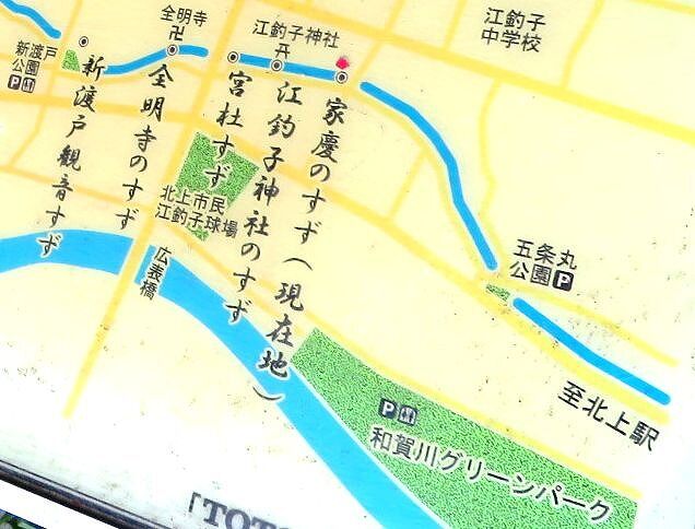以下は裏参道を下りた付近にあったものです。まずは江釣子神社のすず。