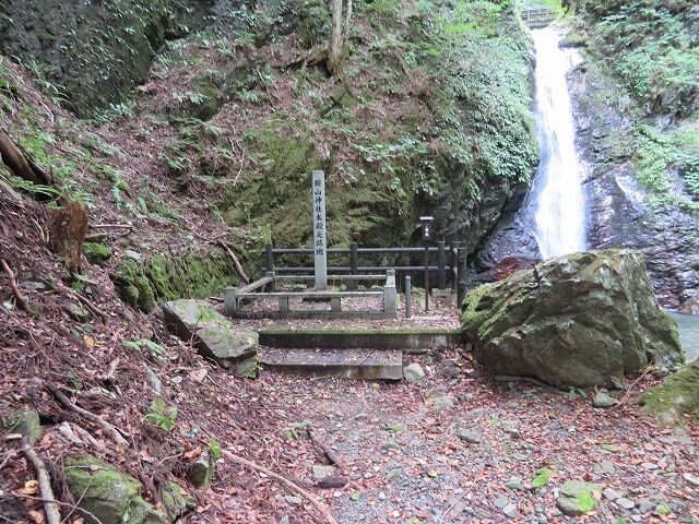本殿之跡地から見た浪板不動滝。