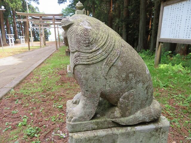 由緒…『文治5年(1189)源義経追伐の将、畠山重忠公の創建。建久2年(1191)南部藩祖南部光行公の勧請。久慈市長内町の高台に鎮座し、古くから氏神様として当地方の信仰を集めている。南部藩主が代参を遣わしたいう記録もあり、南部家と縁のあった神社であったことを偲ばせる。また海上安全の神としても各地域からの信仰を集め、江戸時代、この地を通った商人などが納めた絵馬も残されている。』