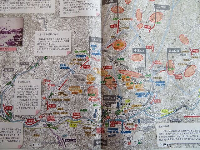 慶長19年(1614)…七十枚金山の開発(板木沢銀山の山師13名が中心)。板木沢銀山、湯口内銀山(のち向山銀山)を休山。土倉山(鉛)を直山とし、石かね奉行を置く。水無村を分割し、坑夫長屋の町割り(銀山町新町、1万人規模)をおこなう※慶長19年、七十枚金山の発見は、阿仁地方を激変させました。七十枚の語源は、30日間鉱山を掘るときの運上金(税金)が、大判70枚(700両)の契約と云う意味です。破格の金山の出現に湧いた阿仁では、水無村を分割して銀山町が造られ、ここに1万人規模の入植者が集まりました。