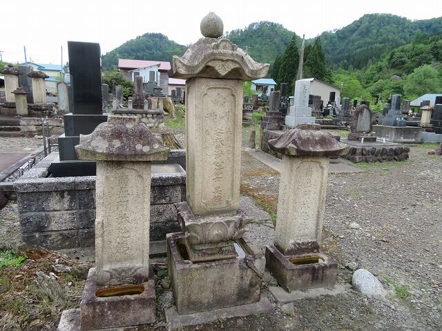 (浄土宗)一心山圓信院専念寺…『京都知恩院末寺であり、もと真木沢銅山お台所付近にあったといわれ、元和2年(1616)現在地に再興された寺所有の土地は現在の阿仁合駅付近までの広大なものであったが、これを秋田藩主に上納し、その代償として五本骨違い輪の定紋を拝領し、以後当寺の定紋となった。山門は、椙野庄左衛門という人が大阪から来て京都知恩院の山門を形取って元禄6年(1693)建立した。〇専念寺山門(町指定文化財)〇大坂屋彦兵衛の墓石(町指定文化財)この墓石は北前船で阿仁から大阪へ金銀銅を運んだもどり船で運ばれたもので、大阪御影石が使われ建立は、元禄2年(1689)とある。阿仁町観光協会』