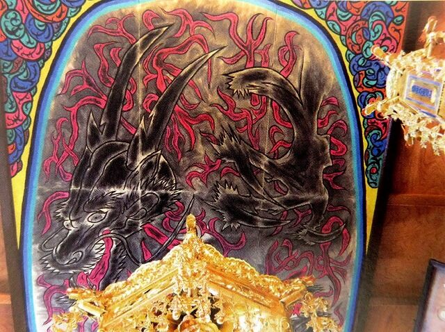 パンフレットより…『【巨大龍天井絵完成までの歩み-夢に現れた「巨大龍を描く己の姿」-】畳9畳分にも及ぶ巨大な龍の天井絵。専念寺第24代住職である珠井証志氏が約3年間の構想期間を経て完成させました。なぜこのような巨大な龍の絵が描かれることになったのでしょうか。■龍は"火を防ぐ神獣"…龍はその昔から水神として各地で祀られており、「火を防ぐ神獣」として信仰されていました。また、国宝級の大きな寺院等には必ずと言っていいほど龍に関係した絵が飾られております。専念寺はその昔、寺を全焼するほどの大火に過去3度も見舞われております。そのため、「自分の寺にも、龍の絵を置けないものか」と珠井住職は日夜考えておりました。■夢に現れた自分の姿…龍の絵を購入するため、珠井住職は京都の絵師のもとへ相談に伺いました。しかしながら、あまりに高額であったため、ご檀家さんに迷惑をかける訳には行かないと考えた珠井住職は、絵の購入を断念しました。その日の夜、珠井住職は不思議な夢を見ました。本堂で自分が何かを描いている-。夢から覚めた珠井住職は、自分が龍の絵を書く運命にあることを悟りました。その後開催された専念寺役員会で、「自分が龍の絵を描いてよいか」と持ちかけたところ、役員の皆様に快諾をいただいたことから、自ら龍の絵を描くことを決心しました。■2頭の龍に込められた想い…2頭の龍に込められた想いは、火から寺を守りたいという想いだけではありません。龍の絵は基本「1頭」だけ描かれるのが一般的となっており、1枚の絵に2頭の龍が存在する絵は珍しいとされています。また、龍は日本だけではなく、中国やインド、ヨーロッパなど世界中で古くから伝えられてきた存在ですが、それぞれの国で伝えられている龍の代表的な特徴のひとつに「爪の数」があります。例えば日本式の龍の爪の数は「3本」ですが、中国・インド・ヨーロッパなどの国に伝えられている龍の爪の数は「4本」となっています。(※中国の皇室に伝えられている龍は、ごく稀に「5本」の爪を持っています。)専念寺の巨大龍天井絵の中に描かれた2頭の龍は、宝珠(いかなる願いも叶うとされる玉)を持つ龍の爪は日本式の「3本」、もう1頭の爪は「4本」となっています。珠井住職はこの絵に「日本と世界の国々が、この2頭の龍のように親密な関係になり、世界が平和になるように」という想いも込めました。日本式の3本爪お龍にあえて宝珠を持たせたのは、日本人(自分たち)から世界に平和を発信していきたいという意味なのかもしれませんね。』