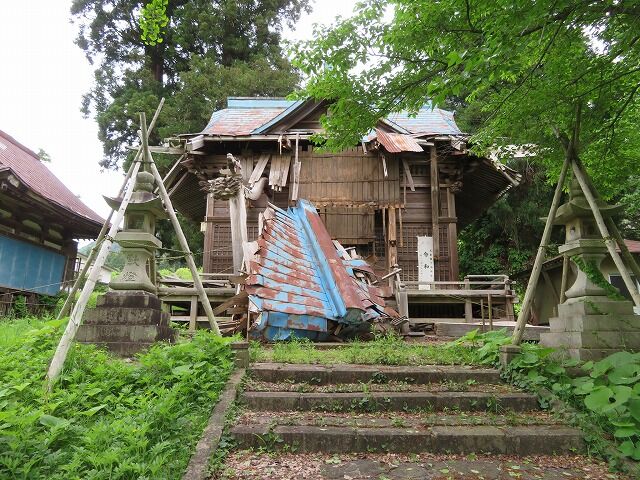大雪の影響でしょうか、社殿が崩壊しております。