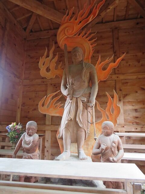パンフレットより…『泉明寺は古来より薬師如来の霊応の地で、日本三御湯の一つ「名取の御湯」の鎮護のため、慈覚大師(円仁)によって開創された。真言宗に属し、宗祖弘法大師(空海)の神仏習合(両部神道)の流れをくみ、主に加持祈濤を行う。ご本尊薬師三尊・日光月光菩薩・十二神将は平安時代の比叡山の高僧の作品と伝えられる。隣に薬師堂は、本来付属仏堂であったが明治初期の神仏分離政策により、神社(祭神大己貴之命)とみなされた経緯があるが、管理や運営は泉明寺がおこなっている。ホテル佐勘の前にある湯神社が秋保温泉の守護「神」とすれば、泉明寺と薬師堂は守護「仏」といわれる。泉明寺も薬師堂も近年新しく再建されたが、その歴史は古く秋保温泉を利用する人々をはじめ地域の人々に親しまれている。』