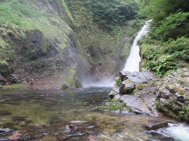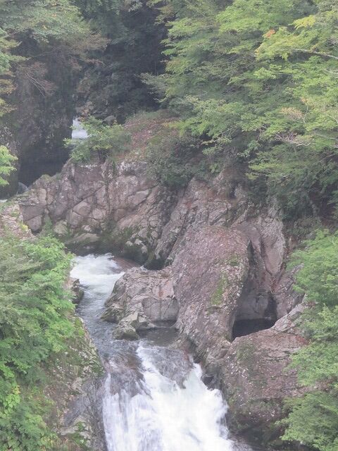 滝口の左右に水の浸蝕を受けてあいた穴が相対し、まるで目のように見えるため「滝まなぐ(滝まなこ)」と呼ばれる奇観が臨めます。