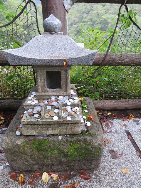 滝への階段入口。不動堂から滝見台まで54段(往復108段)の階段があります。