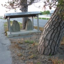 県道156号米マイロードを歩いていましたら立派な松と石碑がありました。石碑は庚申塔と二十三夜塔でした。 よく見るとその向かいにも石碑。 こちらは百万遍でした。 うん?奥に見えるのは… 円筒分水工ですね。 下の穴から水が放出されています。 上から美しく溢流 ...